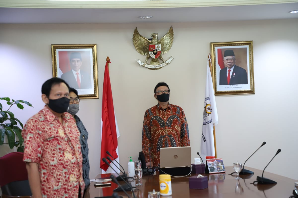 Menteri PANRB Tjahjo Kumolo saat memberikan Kuliah Umum Universitas Abdurrab secara virtual, Kamis (03/09).