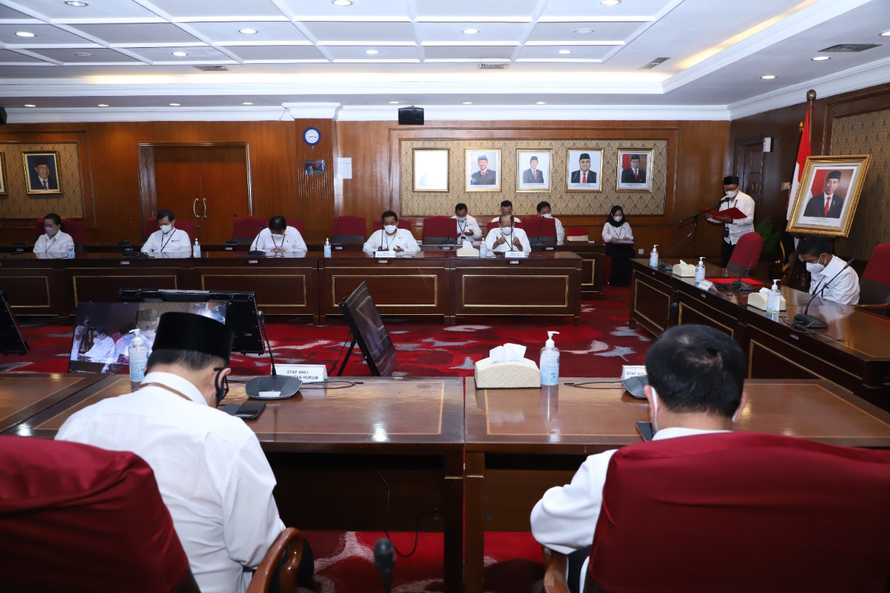 Kementerian Pendayagunaan Aparatur Negara dan Reformasi Birokrasi (PANRB) menyelenggarakan apel pagi secara hibrida di Jakarta, Senin (05/09). Bertindak sebagai pemimpin apel Deputi Bidang SDM Aparatur Kementerian PANRB Alex Denni.