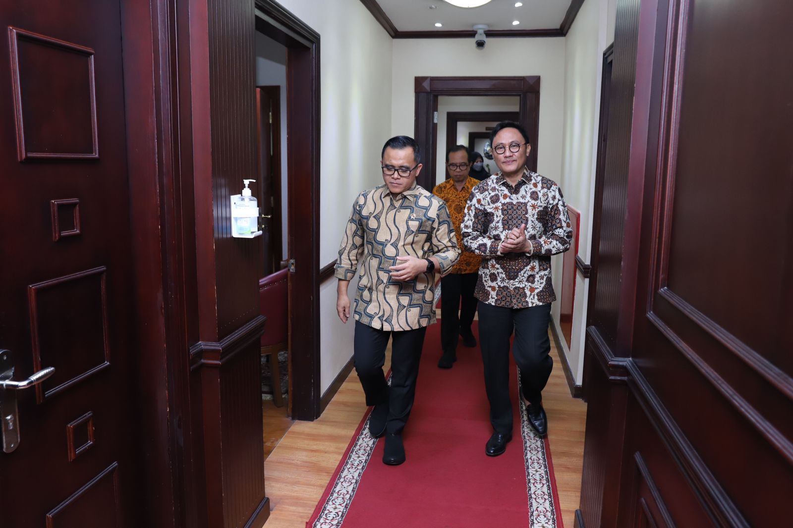 Menteri Pendayagunaan Aparatur Negara dan Reformasi Birokrasi (PANRB) Abdullah Azwar Anas menerima audiensi Kepala Badan Penyelenggara Jaminan Produk Halal (BPJPH) Muhammad Aqil Irham, di Kantor Kementerian PANRB, Jakarta, Jumat (31/03).