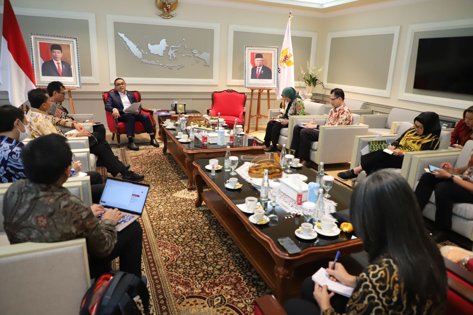 Menteri Pendayagunaan Aparatur Negara dan Reformasi Birokrasi (PANRB) Abdullah Azwar Anas menerima audiensi Program Director USAID Erman Rahman di Kantor Kementerian PANRB, Jakarta, Rabu (22/11). Pertemuan ini membahas program kerja sama yang telah dijalankan serta rencana penguatan kerja sama antara Kementerian PANRB dan USAID.