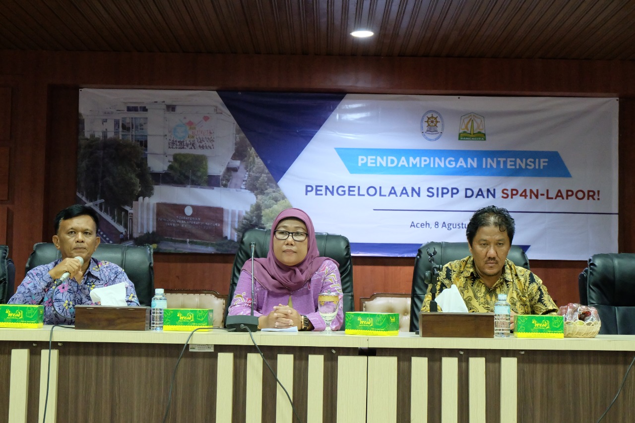 Kementerian Pendayagunaan Aparatur Negara dan Reformasi Birokrasi (PANRB) melalui Kedeputian bidang Pelayanan Publik, melakukan Pendampingan Intensif Pengelolaan Sistem Informasi Pelayanan Publik (SIPP) dan Sistem Pengelolaan Pengaduan Pelayanan Publik Nasional (SP4N-LAPOR!) versi 3.0 di Banda Aceh, Kamis (08/08). Acara yang dilaksanakan di Kantor Gubernur Provinsi Aceh ini dibuka oleh Kepala Biro Organisasi Sekretariat Daerah Aceh Daniel Arca. Bimbingan teknis ini diikuti oleh perwakilan dari Biro Organisasi Sekretariat Kabupaten dan Kota, Dinas Komunikasi dan Informasi, Dinas Penanaman Modal dan Pelayanan Terpadu Satu Pintu, Dinas Kependudukan dan Catatan Sipil, Rumah Sakit Umum Daerah, Inspektorat, dan Badan Pengelolaan Keuangan yang berada di wilayah pemerintah kota, kabupaten, dan provinsi Aceh. Turut hadir dalam kegiatan ini Kepala Bidang Pengelolaan Sistem Informasi Pelayanan Publik Kementerian PANRB Emida Suparti, Kepala Bagian Kepegawaian dan Akuntabilitas Kinerja Biro Organisasi Sekretaris Daerah Provinsi Aceh Deddy, Kepala Bagian Ketatalaksanaan Biro Organisasi Sekretaris Daerah Provinsi Aceh Kusmayadi, dan Kepala Subbidang Perencanaan dan Pengelolaan Sistem Informasi Pelayanan Publik Kementerian PANRB Desianto Haryoso.