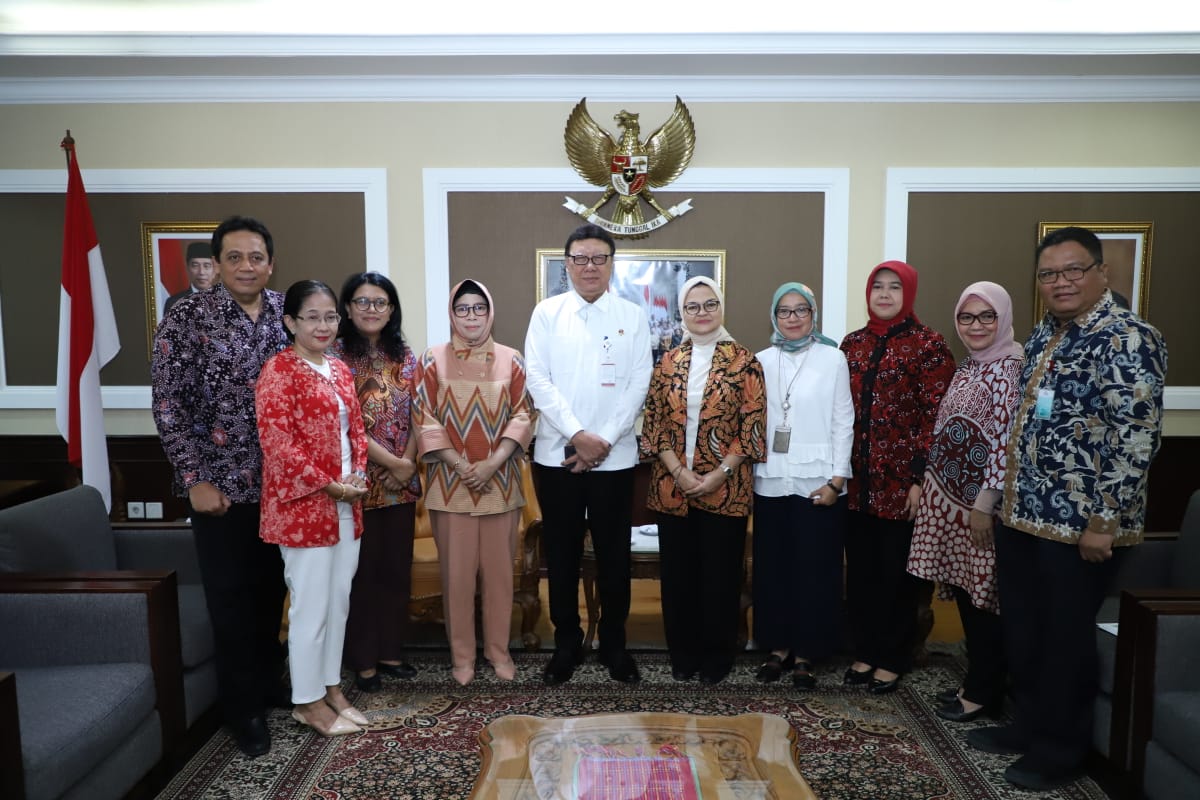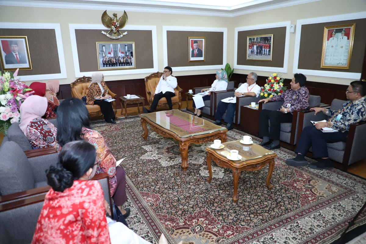 Menteri Pendayagunaan Aparatur Negara dan Reformasi Birokrasi (PANRB) Tjahjo Kumolo menerima kunjungan Kepala Badan Pemeriksa Obat dan Makanan (BPOM) Penny K. Lukito di Kantor Kementerian PANRB, Jakarta, Selasa (03/12). Dalam kunjungannya tersebut, Penny membahas mengenai kelembagaan dan SDM Aparatur di lingkungan BPOM. Turut hadir Deputi bidang Kelembagaan dan Tata Laksana Kementerian PANRB Rini Widyantini, Plt. Sestama BPOM Reri Indriani, Inspektur Utama BPOM Elin Herlina, Asisten Deputi Perencanaan dan Pengadaan SDM Aparatur Kementerian PANRB Arizal, Kepala Biro Hukum dan Organisasi BPOM Riati Anggriani, dan Kepala Biro SDM dan Umum BPOM Rita Mahyona.
