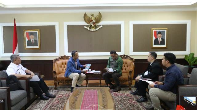 Menteri Pendayagunaan Aparatur Negara dan Reformasi Birokrasi (PANRB) Syafruddin menerima kunjungan Deputi Hukum dan Kerjasama Badan Narkotika Nasional (BNN) Irjen Puji Sarwono dan Ketua Youth Organization of Islamic Coorperation (OIC), di Ruang Tamu Utama Kementerian PANRB, Jakarta, Selasa (09/10). Pertemuan itu membahas agenda 'Youth Leader Summit' ketiga yang bertema Memperkuat Kerjasama Pemimpin Muda Dunia dalam Menghadapi Tantangan Global. Selain itu, pertemuan ini juga membahas kepemimpinan organisasi pemuda Islam yang ada di Indonesia.