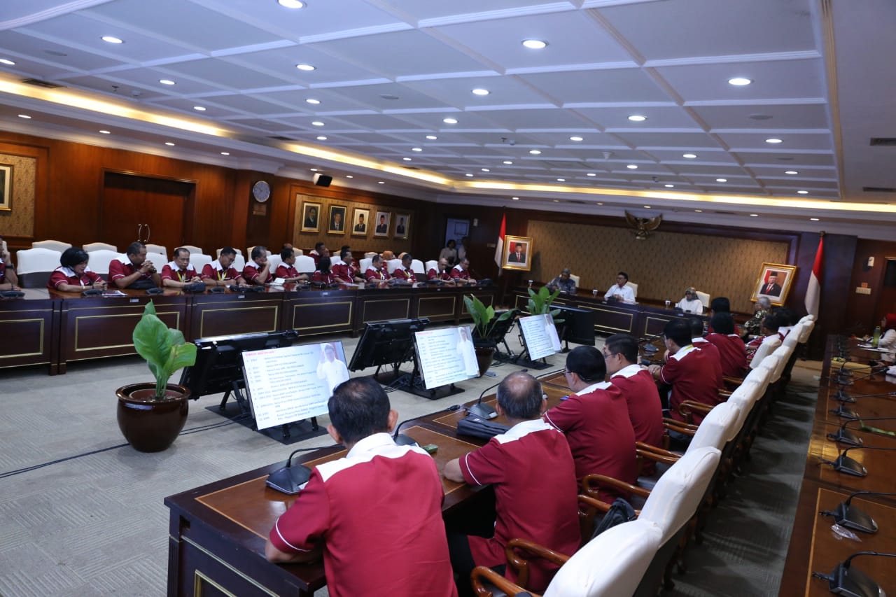Menteri Pendayagunaan Aparatur Negara dan Reformasi Birokrasi (PANRB) Tjahjo Kumolo memberikan masukan terhadap Policy Paper Pelatihan Kepemimpinan Nasional Tingkat I Angkatan XLIII tahun 2019, di Kantor Kementerian PANRB, Jakarta (02/12). Acara tersebut dihadiri oleh Deputi bidang Kelembagaan dan Tata Laksana Kementerian PANRB Rini Widyantini, serta Deputi Bidang Penyelenggaraan Pengembangan Kompetensi Lembaga Administrasi Negara (LAN) Basseng.