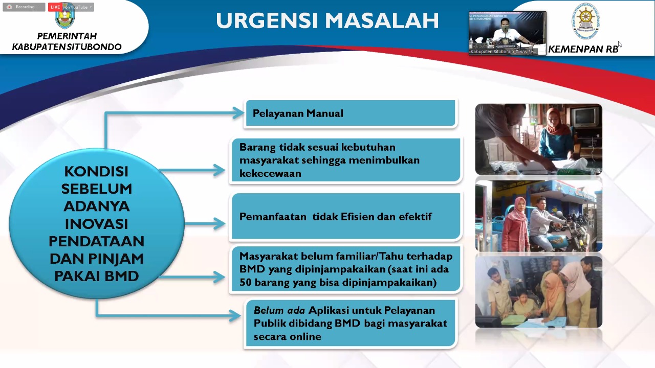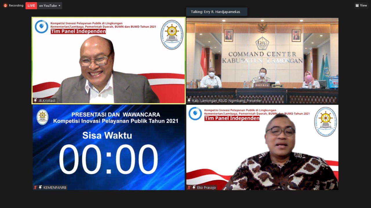 Tahap presentasi dan wawancara Kompetisi Inovasi Pelayanan Publik (KIPP) 2021 memasuki hari kedelapan. Hari ini, Rabu (07/07), sembilan inovator mempresentasikan hasil terobosannya di hadapan Tim Panel Independen. Sesi pertama dibuka oleh Dinas Kesehatan Pemkab Banyumas dengan inovasi PSC 119-SATRIA, yakni sistem aplikasi terpadu rujukan, informasi kesehatan, dan ambulans gawat darurat. Pemkab Karanganyar melanjutkan presentasi berikutnya. Disdukcapil Karanganyar membawakan inovasi yang dinamakan Pelayanan Akta Perkawinan Pitu Dadi Siji atau Pak Tuji. Inovator ketiga yang tampil adalah Pemkab Kendal, dengan inovasi Protades, yaitu Program Digitalisasi Buku Letter C Desa.