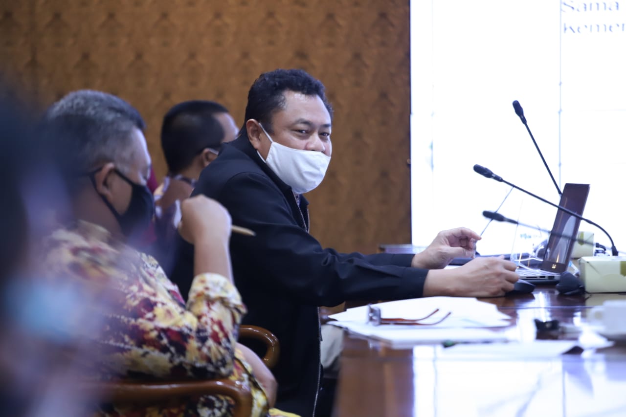 Sekretaris Kementerian Pendayagunaan Aparatur Negara dan Reformasi Birokrasi (PANRB) Dwi Wahyu Atmaji memimpin rapat kerja terkait pemantauan perkembangan pelaksanaan rencana kegiatan, realisasi anggaran, serta pelaksanaan reformasi birokrasi dan zona integritas di lingkungan Sekretariat Kementerian PANRB, Jakarta, Kamis (30/07). Atmaji mengatakan forum ini sangat penting agar masing-masing staf di unit lingkungan Sekretariat Kementerian PANRB saling peduli satu sama lain terkait kegiatan yang telah dilakukan tiap unit kerja.