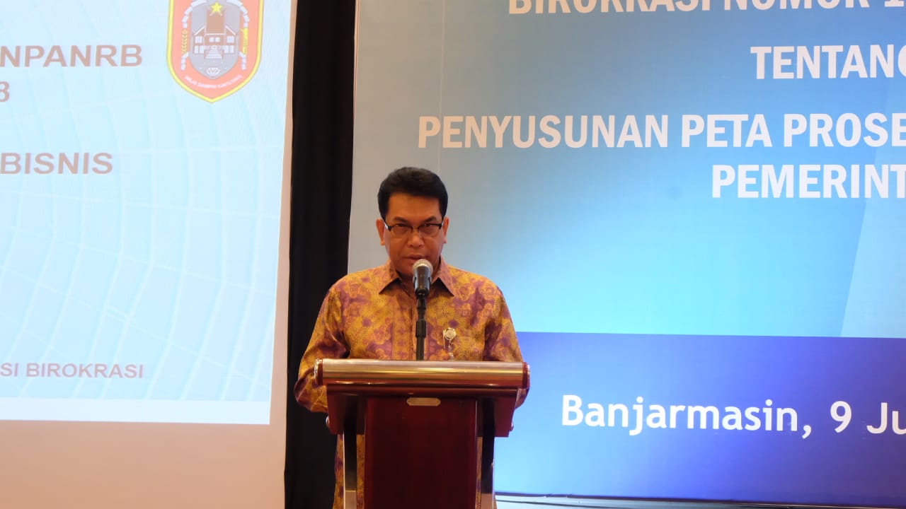 Kementerian Pendayagunaan Aparatur Negara dan Reformasi Birokrasi (PANRB) melalui Kedeputian Kelembagaan dan Tata Laksana menyelenggarakan Sosialisasi Peraturan Menteri PANRB No. 19/2018 tentang Penyusunan Peta Proses Bisnis Instansi Pemerintah di Kota Banjarmasin, Kalimantan Selatan, Selasa (09/07). Sosialisasi tersebut dibuka oleh Sekretaris Deputi bidang Kelembagaan dan Tata Laksana Kementerian PANRB T. Eddy Syahputra. Dalam sambutannya, Eddy menekankan dengan terbitnya Peraturan Menteri PANRB Nomor 19 Tahun 2018 bagi instansi pemerintah yang sudah menyusun peta proses bisnis dapat segera menyesuaikan dengan peraturan ini. Sedangkan instansi pemerintah yang belum menyusun peta proses bisnis, dapat segera menerapkan kebijakan tersebut. Diharapkan dengan adanya aturan tersebut diperoleh profil kelembagaannya. Dalam upaya ini, Kementerian PANRB akan melakukan asistensi dan verifikasi terhadap hasil evaluasi tersebut.