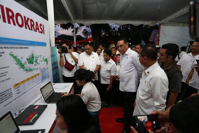 Menteri Pendayagunaan Aparatur Negara dan Reformasi Birokrasi (PANRB) Syafruddin menghadiri acara Gathering Keluarga Kabinet Kerja "Solidaritas Tanpa Batas" yang diadakan di Istana Kepresidenan Bogor, Minggu (04/08). Dalam kegiatan yang diisi dengan serangkaian perlombaan dan hiburan ini juga dilakukan pengumpulan donasi untuk para korban gempa di Banten. Turut...
