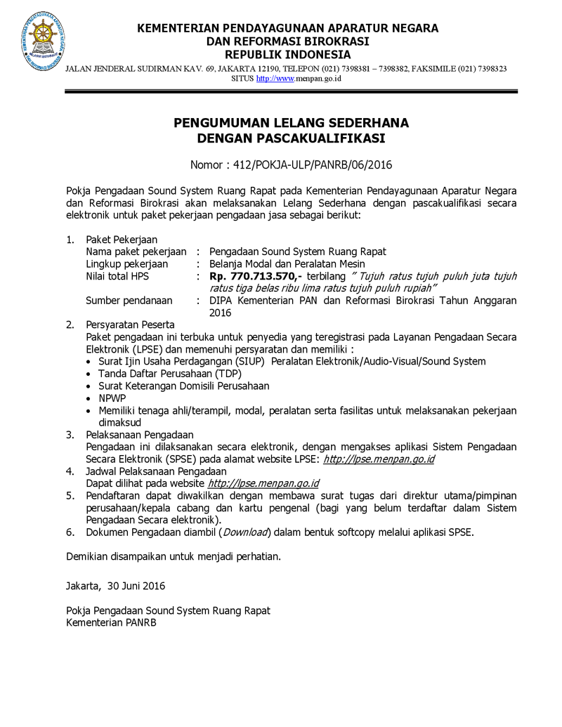 Keputusan Menteri PANRB Nomor 1148 Tahun 2021 tentang Aplikasi Umum Bidang Pengadaan Barang dan Jasa Pemerintah