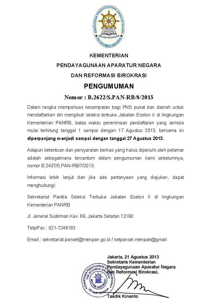JAKARTA – Panitia seleksi nasional (Panselnas) CPNS 2013 hari Jumat, (14/02) mengumumkan kelulusan tenaga honorer kategori 2 dari yang mengikuti seleksi di 83 pemerintah daerah yang tersebar di 5 provinsi, dan dua kabupaten di NTB dan 3 kabupaten/kota di Sumatera Utara. Kelima provinsi dimaksud adalah Sumatera Barat, Jambi, Sumatera Selatan, Lampung,...